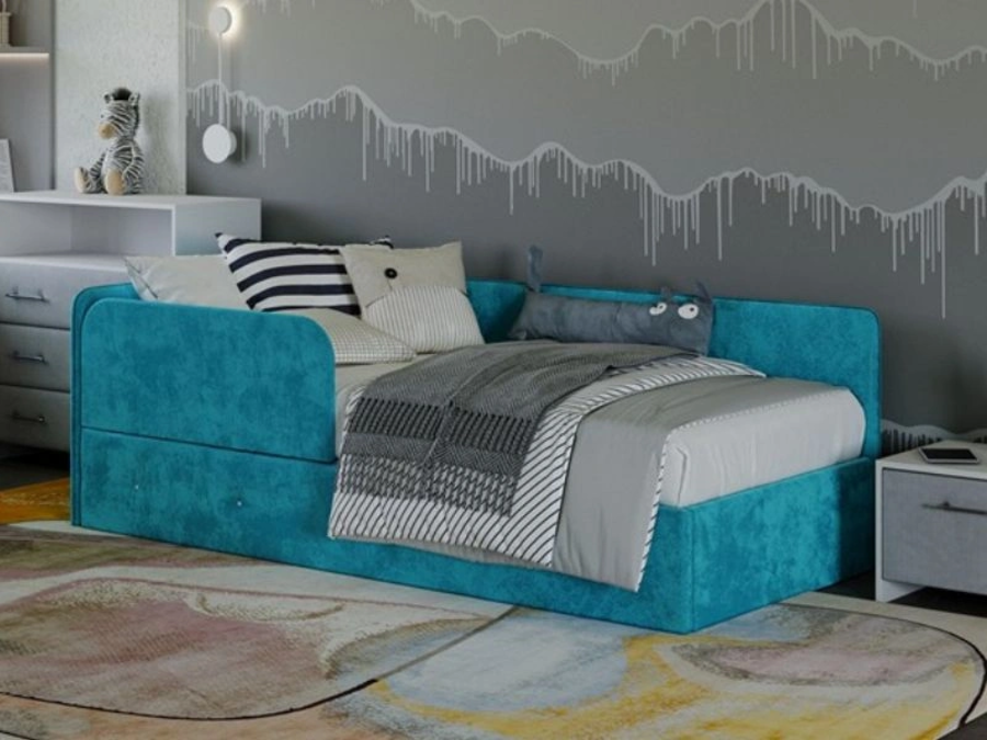 Детская кровать, которая при желании превращается в угловую кровать или кровать-диван с подлокотниками-бортиками с обеих сторон.