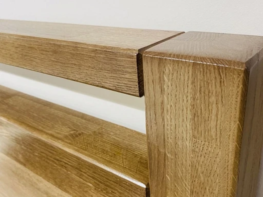 • в исполнениях из дуба – массив 20 и 40 мм., шпонированая дубом фанера 12 мм. в изголовье;