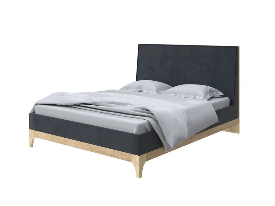 Изголовье обито мягкой мебельной тканью, обеспечивающей комфорт при опоре. Обратная сторона изголовья выполнена из прочного ЛДСП, поэтому кровать рекомендуется устанавливать у стены. Такая конструкция повышает долговечность и сохраняет форму изголовья.